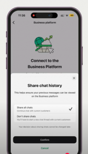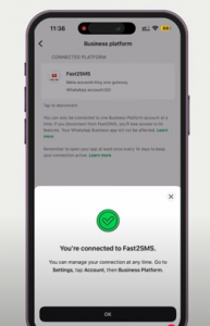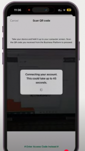 Step 12: When you click on “Scan QR Code”, you will get message “connect to your Business platform”.